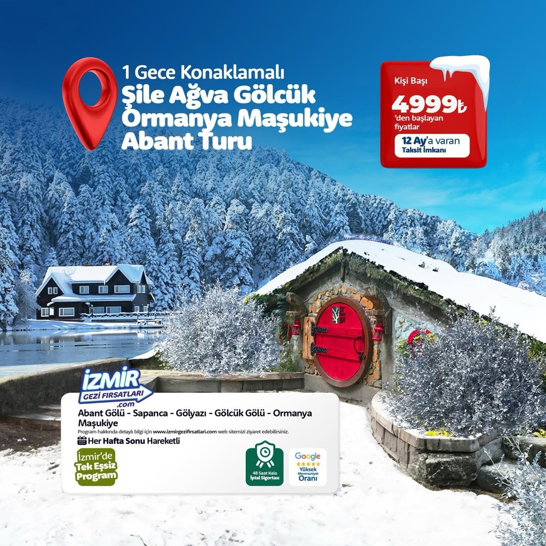 Değerli misafirlerimiz; Belirtilen duraklardan Cuma günü akşamı belirtilen saatlerde sizleri karşıladıktan sonra İZMİR GEZİ FIRSATLARI ‘nın konforlu araçları ile yolculuğumuza başlıyoruz. Unova tesislerinde erken saatlerde gerçekleşecek kahvaltımızın (ekstra) ardından ,Abant Gölü ziyaretimiz için yolculuğumuz kaldığı yerden devam ediyor. Her mevsimde ayrı güzelliğe sahip olan Abant Gölü’nde, muhteşem doğa manzaralarını meşe, köknar, dişbudak, çam, kavak, kayın ve gürgen ağaçlarının, dağ çiçeklerinin ve meyveli bitkilerin arasında yürüyüşümüzü gerçekleştirip bol bol fotoğraf çekimleri yapıyor ve tertemiz doğasında vakit geçiriyoruz.Serbest zamanımızı da tamamladıktan sonra vakit kaybetmeden sizlerin daha rahat gezebilmesi için Gölcük Gölü bölgesine hareket ediyoruz. İnternet ve sosyal medyada sıklıkla karşılaştığımız o meşhur evin bulunduğu yer olan doğa harikası Gölcük Gölü’nde, eşsiz göl ve doğa manzaralarını izleyebileceğimiz seyir teraslarında fotoğraflar çekip, yürüyüş parkurlarında gezintiler yapıyoruz. Ardından yönümüzü Ormanya Doğal Yaşam Parkı `na çeviriyoruz. Ormanya Doğal Yaşam Parkı projesine 2014 yılında başlanmıştır ve projenin planlaması 10 yıldan fazla zaman sürmüştür. Doğal çevresiyle 4 bin dönümlük alandan oluşan Ormanya Doğal Yaşam Parkı Dünya`nın üçüncü, Avrupa`nın en büyük doğal yaşam parkıdır. İçerisinde bulunan canlıların doğal koşullarına en yakın ortamda yaşamaları için tüm ihtiyaçların yerine getirildiği Ormanya Doğal Yaşam Parkı`nda, gelen ziyaretçiler için tüm detaylar incelikle ve titizlikle planlanmıştır. Burada `Yüzüklerin Efendisi“ ve “Hobbitler“ filmiyle ünlenen Hobbit Evleri ‘nin bulunduğu alanı gezerek, bu güzel görüntüleri anılarımıza ekliyoruz. Ardından Maşukiye `ye hareket ediyoruz.. Ormanlar arasında yer alan Maşukiye`de, tertemiz ve bol oksijenli havasını soluyarak gezintimize başlıyoruz. Maşukiye`nin ismi aşık anlamına gelen maşuktan geliyor. Gerçekten de etraftaki doğal güzellikler “buraya gelen aşık olur” denilen ve herkesin dudaklarından bir daha geleceğim dedirten bu doğa harikası yerde vereceğimiz serbest zamanda isteyenler ATV turuyla doğanın tadını çıkarırken, dileyenler de Zipline ile adrenalin keyfini yaşayabilirler. Rehberimizin belirlediği saatte buluşarak, 5* Ramada By Wyndham Hotel ‘e geçiyoruz. Akşam yemeği sonrasında isteyen konuklarımız otelin kapalı havuzundan ve diğer ıslak alan aktivitelerinden faydalanabilirler.